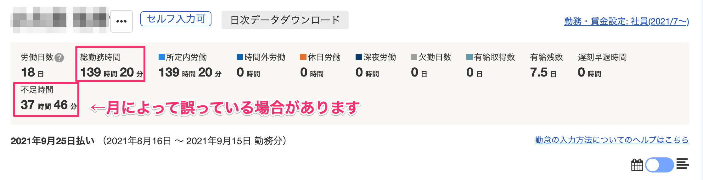 - 「総勤務時間」には有休も含まれます。